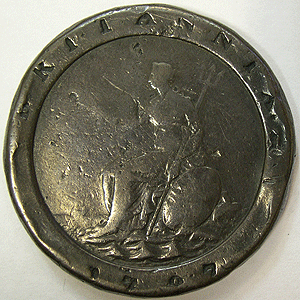 Referencia:10064 INGLATERRA. 2 PENIQUES. 1797. "JORGE III".Desgastes generales y golpes. KM 619. RC. COBRE