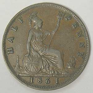 Referencia:10112 INGLATERRA. ½ PENIQUE. 1861. "REINA VICTORIA". KM 748.2. MBC- a MBC. BRONCE