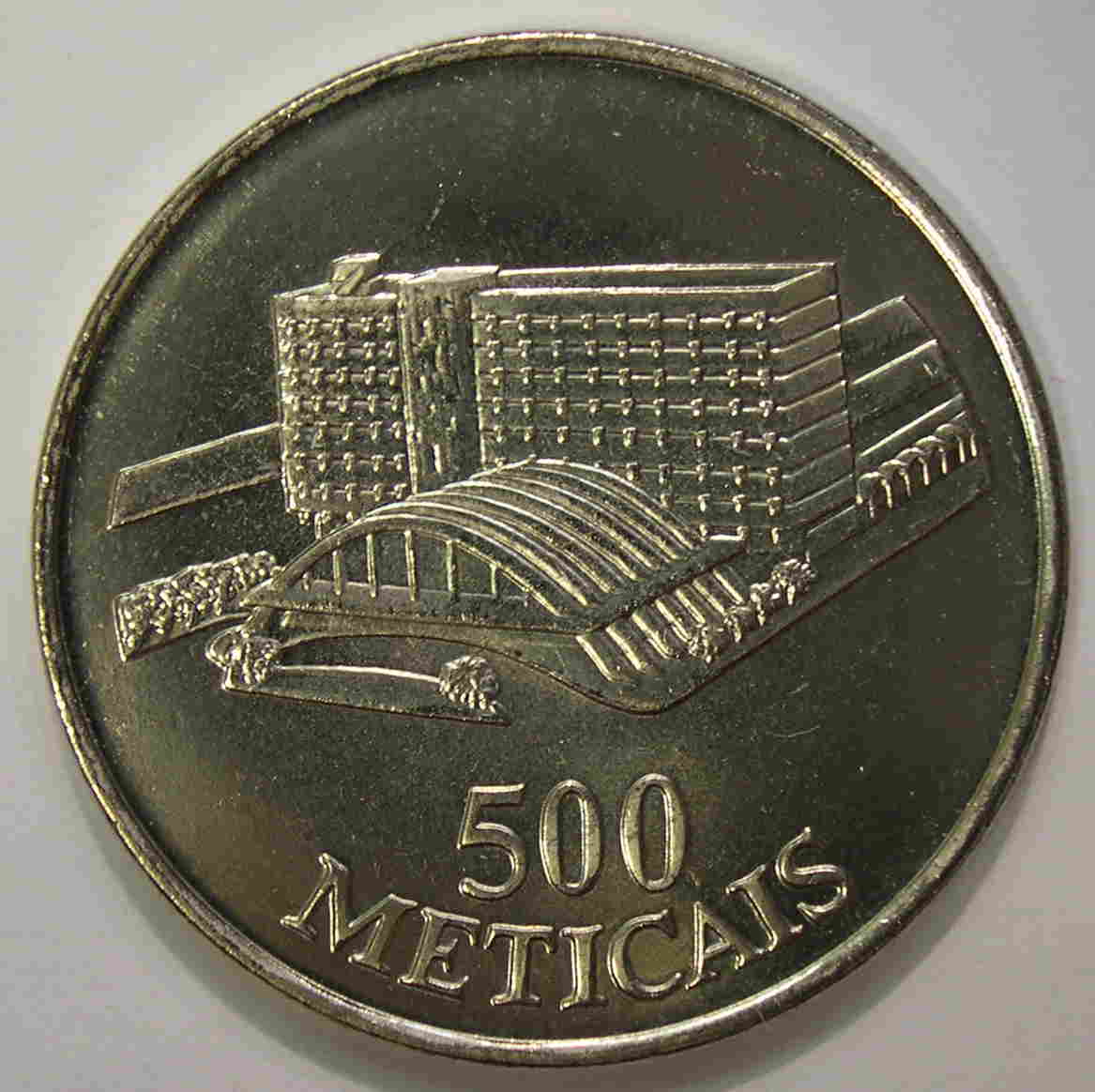 Referencia:10146 MOZAMBIQUE. 500 METICAIS. 1994. "EDIFICIO". KM 121. SC. NIQUEL-ACERO