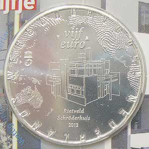 Referencia:10150 HOLANDA. 5 EUROS. 2013. "CASA RIETVED SCHRODER".Coincard. SC. COBRE PLATEADO