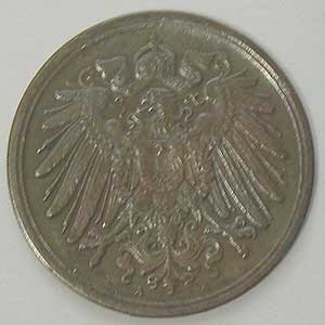 Referencia:10186 ALEMANIA IMPERIO. PFENNIG. 1900. A. "ESCUDO". KM 10. MBC a MBC+. COBRE