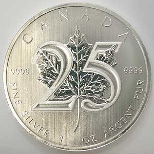 Referencia:10801 CANADA. 5 DOLARES. 2013. "HOJA DE ARCE- 25 ANIVERSARIO". SC. PLATA