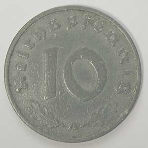 Referencia:11063 ALEMANIA III REICH. 10 REICHSPFENNIG. 1940. A. "ESVASTICA". KM 101. MBC a MBC+. ZINC