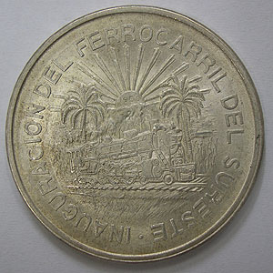 Referencia:1114 MEXICO. 5 PESOS. 1950. "INAGURACIÓN FERROCARRIL SURESTE". KM 466. SC-. PLATA