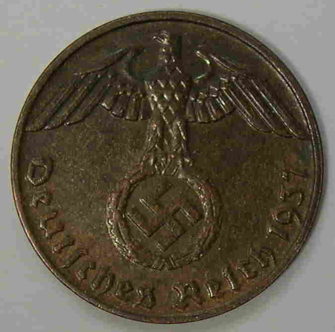 Referencia:12176 ALEMANIA III REICH. REICHSPFENNIG. 1937. E. "ESVASTICA". KM 89. MBC+. BRONCE