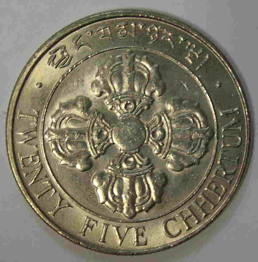 Referencia:12298 BHUTAN. 25 CHETRUMS. 1979. "DOS PECES EN CIRCULO-EMBLEMA". KM 47. SC-. CUPRONIQUEL