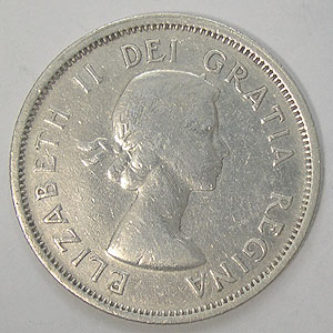 Referencia:1749 CANADA. 25 CENTS.. 1955. "CABEZA RENO". KM 52. MBC. PLATA