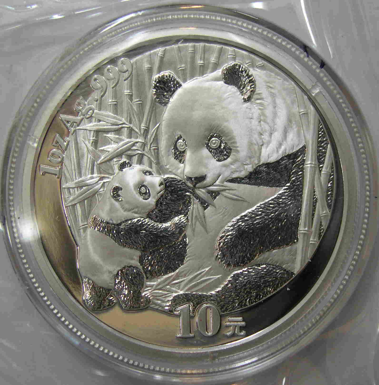 Referencia:1772 CHINA. 10 YUANGS. 2005. "OSO PANDA CON CRIA". KM 1589. PRF. PLATA