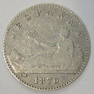 Referencia:191 GOBIERNO PROVISIONAL. 50 CÉNTIMOS DE PESETA. 1870. -*0. Desgastes. BC+. PLATA