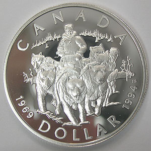 Referencia:2265 CANADA. DOLAR. 1994. "PERROS CON TRINEO".Con estuche y certificado. KM 251. PRF. PLATA