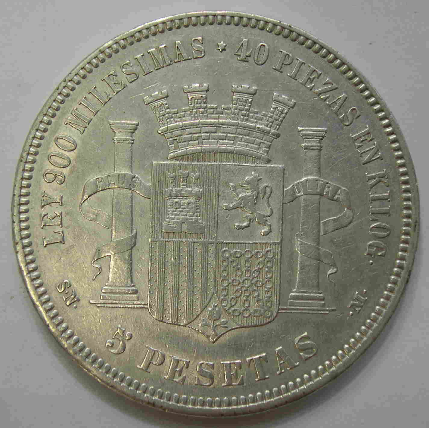 Referencia:22717 GOBIERNO PROVISIONAL. 5 PESETAS. 1870. 18*70. Golpecitos canto. MBC+ a EBC-. PLATA