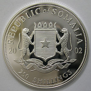 Referencia:2976 SOMALIA. 250 CHELINES. 2002. "OLIM. ROMA 1960-ATLETA". PRF. PLATA