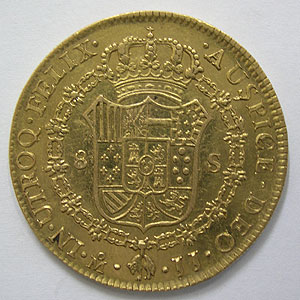 Referencia:3138 FERNANDO VII. 8 ESCUDOS. 1819. JJ. MEXICO. Desgaste busto. MBC+. ORO