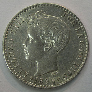 Referencia:336 ALFONSO XIII. 50 CÉNTIMOS DE PESETA. 1896. 9*6. Variante oreja rayada.Restos brillo original. EBC- a EBC. PLATA