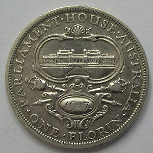 Referencia:3738 AUSTRALIA. FLORIN. 1927. "PARLAMENTO-CANBERRA". Insignificantes golpecitos canto. KM 31. MBC+. PLATA