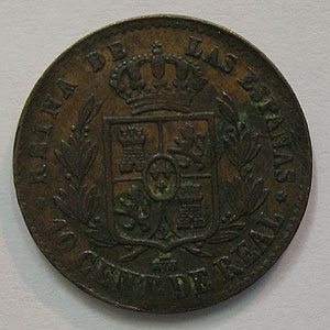Referencia:3996 ISABEL II. 10 CENTIMOS DE REAL. 1855. SEGOVIA. MBC a MBC+. COBRE