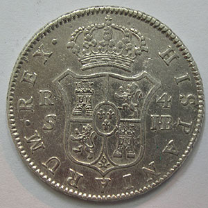 Referencia:4122 FERNANDO VII. 4 REALES. 1824. J.B. SEVILLA. Desgaste y dos rayitas en busto.. MBC- a MBC. PLATA