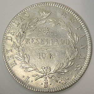 Referencia:4123 FERNANDO VII. 10 REALES. 1821. L.T. SANTANDER. Parte de brillo original. EBC-. PLATA