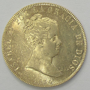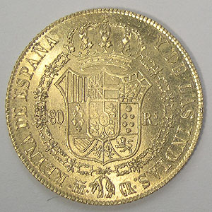 Referencia:4183 ISABEL II. 80 REALES. 1834. CR. MADRID. Pleno brillo original.Alguna rayita. EBC+. ORO