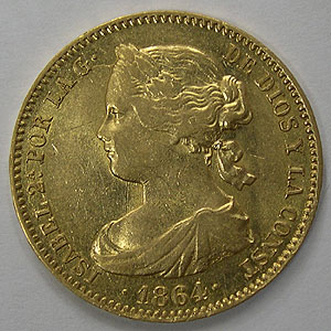 Referencia:4194 ISABEL II. 100 REALES. 1864. MADRID. MBC+ a EBC-. ORO