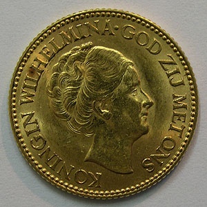 Referencia:4307 HOLANDA. 10 GULDENS. 1925. "GUILLERMINA". KM 162. EBC+ a SC-. ORO