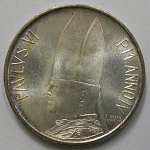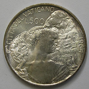 Referencia:4316 VATICANO. 500 LIRAS. 1966. "PABLO VI-BUSTO Y OVEJA". KM 91. SC. PLATA