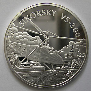Referencia:4368 I. SALOMON. 25 DOLARES. 2003. "HISTORIA AVIACIÓN - SIKORSKY VS-300". PRF. PLATA