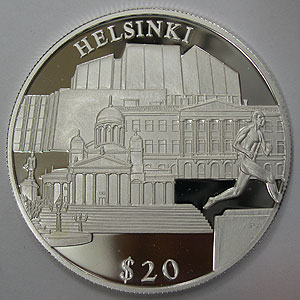 Referencia:4693 LIBERIA. 20 DOLARES. 2000. "HELSINKI". PRF. PLATA