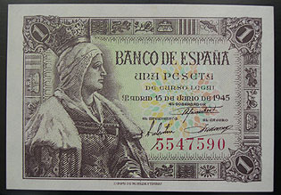Referencia:4709 PESETA. EMISIÓN 15 DE JUNIO DE 1945. SIN SERIE. "ISABEL LA CATÓLICA".Marca central.Todo su apresto. EBC+ a SC-