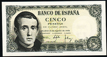 Referencia:4749 5 PESETAS. EMISIÓN 16 DE AGOSTO DE 1951. SERIE 1I. "JAIME BALMES". SC