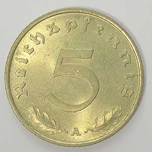 Referencia:4811 ALEMANIA III REICH. 5 REICHSPFENNIG. 1939. A. "ESVASTICA".Brillo original. KM 91. SC-. ALUMINIO-BRONCE