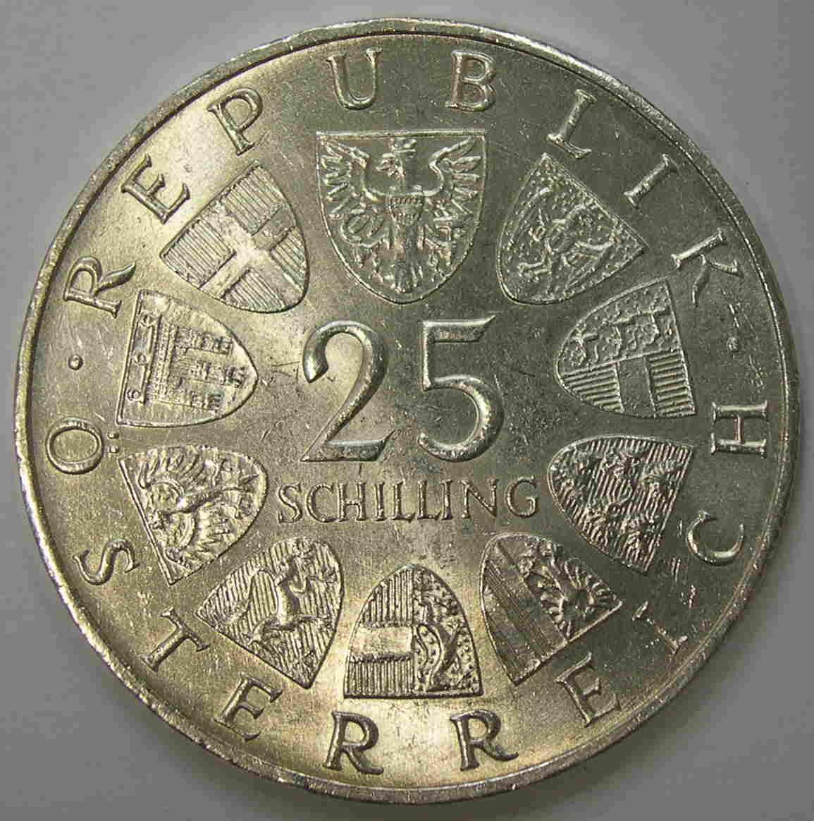 Referencia:5126 AUSTRIA. 25 CHELINES. 1965. "150 ANIV. ESCUELA TECNICA DE VIENA-J.J. R.v.PRECHTL". KM 2897. EBC+. PLATA