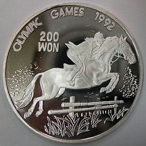 Referencia:5478 KOREA NORTE. 200 WON. 1991. "HIPICA-OLIMPIADA 1992". KM 50. PRF. PLATA