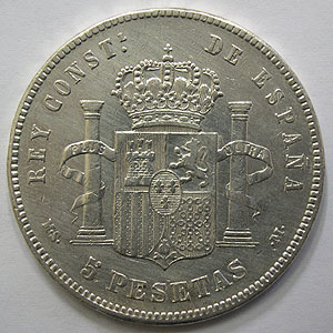 Referencia:5566 ALFONSO XII. 5 PESETAS. 1885. 18*87. M.S.M. Insignificante golpecito canto.Limpiado. MBC. PLATA