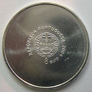 Referencia:5650 PORTUGAL. 8 EUROS. 2004. "SIMBOLO EXPLOSIÓN GOL". KM 758. SC. PLATA