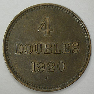 Referencia:5856 GUERNSEY. 4 DOUBLES. 1920. "ESCUDO". KM 13. MBC+. BRONCE