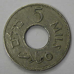 Referencia:5889 PALESTINA. 5 MILS. 1927. KM 3. MBC a MBC+. CUPRONIQUEL