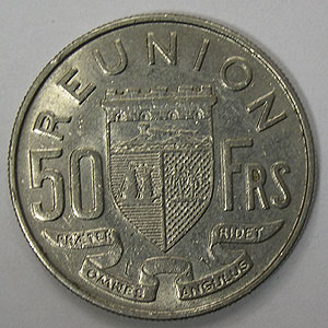 Referencia:6348 REUNION. 50 FRANCOS. 1964. "CABEZA LIBERTAD". KM 12. EBC a EBC+. NIQUEL