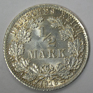 Referencia:6431 ALEMANIA IMPERIO. ½ MARCO. 1916. A. "ÁGUILA". KM 17. SC. PLATA