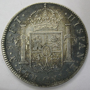 Referencia:6649 CARLOS IV. 8 REALES. 1803. F.T. MEXICO. Pequeño defecto de acuñacion en fecha.Manchas. BC+ a MBC-. PLATA