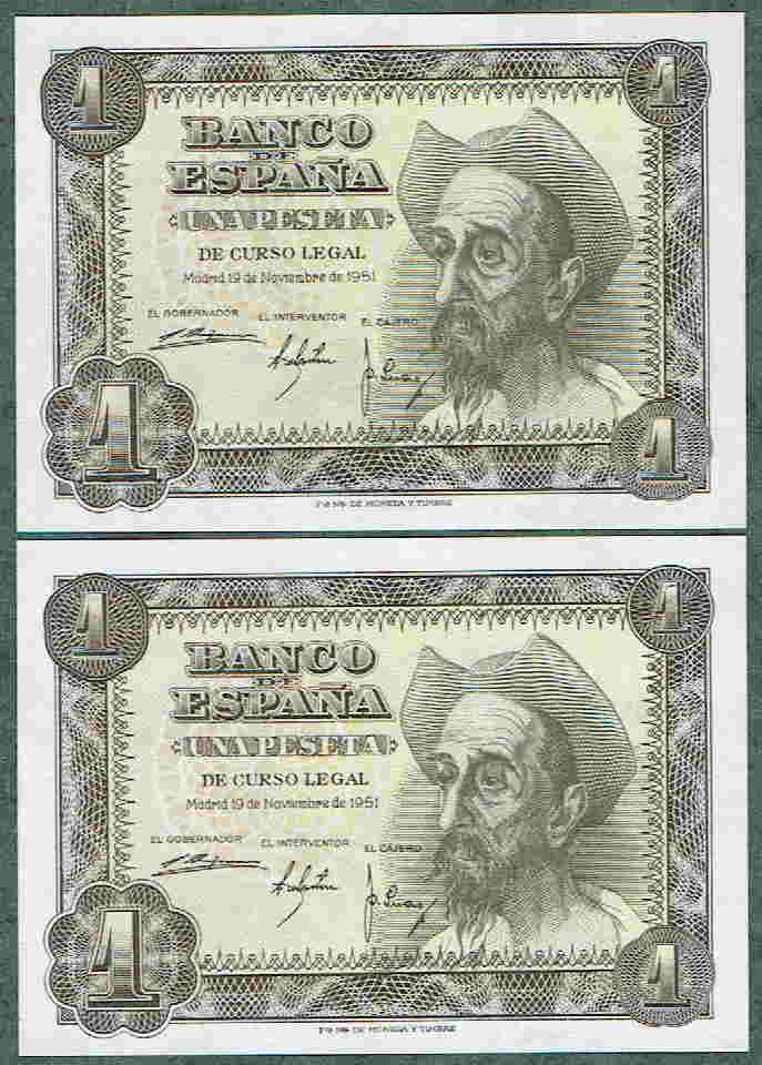 Referencia:6694 PESETA. EMISIÓN 19 DE NOVIEMBRE DE 1951. PAREJA. SERIE S. "DON QUIJOTE". SC