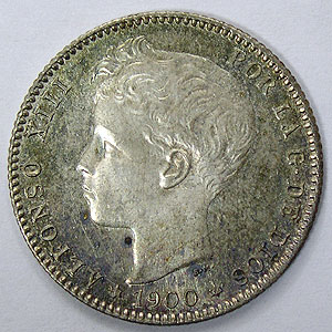 Referencia:6980 ALFONSO XIII. PESETA. 1900. 19*00. Pleno brillo original,preciosa patina. SC- a SC. PLATA