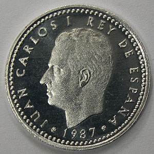 Referencia:7053 JUAN CARLOS I. PESETA. 1987. E-87.Procedente de cartera. PRF. ALUMINIO