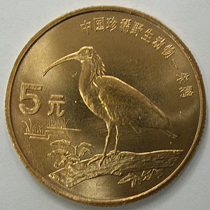 Referencia:7099 CHINA. 5 YUANGS. 1997. "AVE-CRESTED IBIS". KM 980. SC. BRONCE