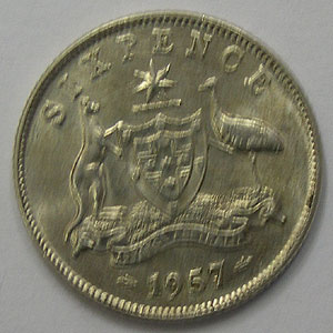 Referencia:7168 AUSTRALIA. 6 PENIQUES. 1957. "ISABEL II". KM 58. EBC. PLATA