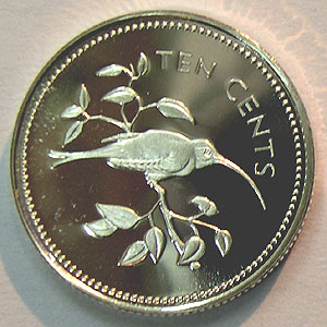 Referencia:7184 BELIZE. 10 CENTS.. 1974. "PAREJA ERMITAÑO DE COLA LARGA". KM 40.a. PRF. PLATA