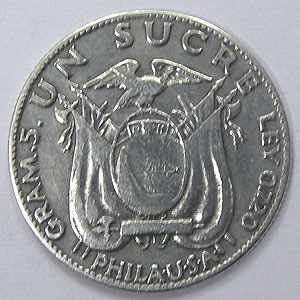 Referencia:7200 ECUADOR. SUCRE. 1928. "BUSTO SUCRE". KM 72. BC+ a MBC-. PLATA