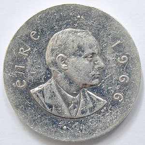 Referencia:7300 IRLANDA. 10 CHELINES. 1966. "50 ANIV. OPRESIÓN-BUSTO HENRY PEARSE".Rayitas en campo y golpecitos canto. KM 18. MBC+. PLATA
