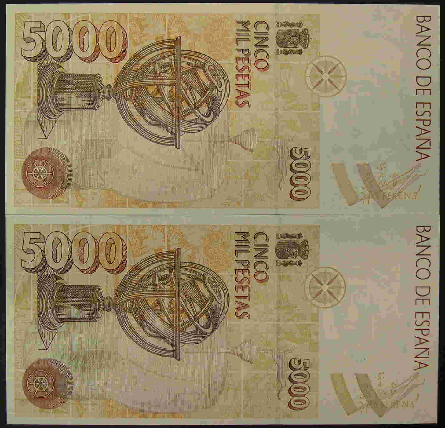 Referencia:732 5.000 PESETAS. EMISIÓN 12 DE OCTUBRE DE 1992. PAREJA. SIN SERIE. "CRISTÓBAL COLÓN". SC
