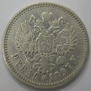 Referencia:7368 RUSIA. RUBLO. 1897. "NICOLAS II". KM Y#59.3. BC+. PLATA